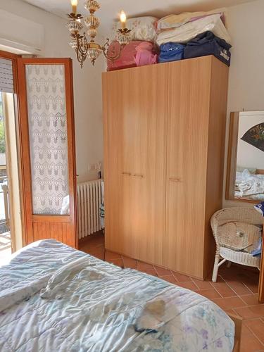 L'ingresso dalle scale condominiali è sulla zona giorno dotata di balcone; il disimpegno conduce alle due camere con balcone e al bagno. All'interno dell'abitazione si trova anche un comodo ripostiglio. La proprietà è arricchita da un ampio garage e da gradevoli spazi condominiali costituiti da giardino e grande parcheggio.