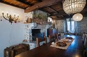 Un casale in sasso completamente indipendente, che riporta il pensiero a tempi antichi, conservato e mantenuto molto bene e con particolare attenzione alle finiture originali. L'ingresso è dal giardino, panoramico e riservato, sul soggiorno con camino, dove la pietra della zona diventa l'elemento principale. L'angolo cottura è separato. L'abitazione dispone inoltre di tre camere, bagno, particolarissimi e accoglienti locali accessori interni, ben sfruttati e uno scenografico ex fienile open space a doppio volume. Il piano sottostante è suddiviso in due ampi locali per rimessaggio, oltre vano tecnico. Esternamente, sul giardino è presente un piccolo annesso con forno e barbecue. Rientrano nella proprietà in vendita, alcune particelle di terreno per complessivi 11.000 mq (circa). Il riscaldamento è autonomo a gpl con radiatori. L'acqua è quella dell'acquedotto pubblico e la strada di accesso è tutta asfaltata