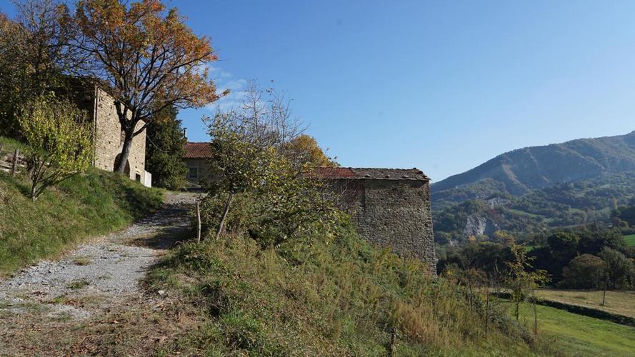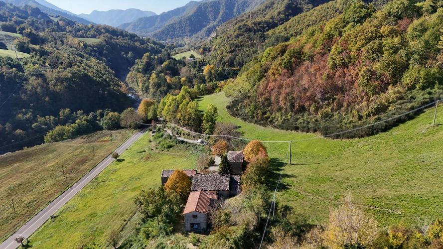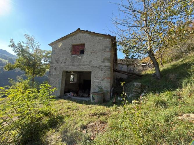 Firenzuola, Coniale (pressi), in direzione di Imola, facilmente raggiungibile e in splendida posizione soleggiata, proponiamo questo suggestivo complesso ex colonico in sasso, avvolto da terreno di circa 4 ettari. Il fabbricato principale comprende l'abitazione che è la classica casa di campagna dall'aria vissuta e informale con tutti gli elementi di una realtà antica e capace di trasmettere emozioni, senso del tempo e del vissuto. Al suo interno si trovano: ingresso, cucina abitabile con camino, soggiorno, tre grandi camere e bagno. Oltre ai vani adibiti ad abitazione, nello stesso fabbricato si trovano: quattro ampie stanze con accesso indipendente nel sottotetto, due ripostigli, forno, due grandi cantine, quattro spaziosi locali ex stalle e depositi. La proprietà comprende, inoltre, due annessi esterni, ex fienili e depositi di cui uno con scenografico arco. L'incantevole panorama si apre sulle colline e sul fiume Santerno. Un luogo magico, in completa sintonia con la natura. L'alloggio necessita di diversi lavori ma potrebbe essere abitato come punto di appoggio per l'estate. Gli annessi richiedono interventi consistenti e offrono ampie possibiità, vista l'importante volumetria.